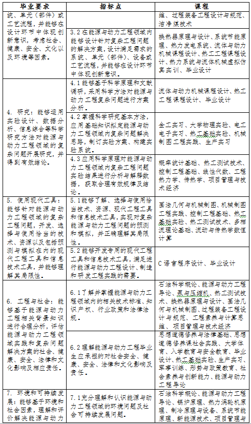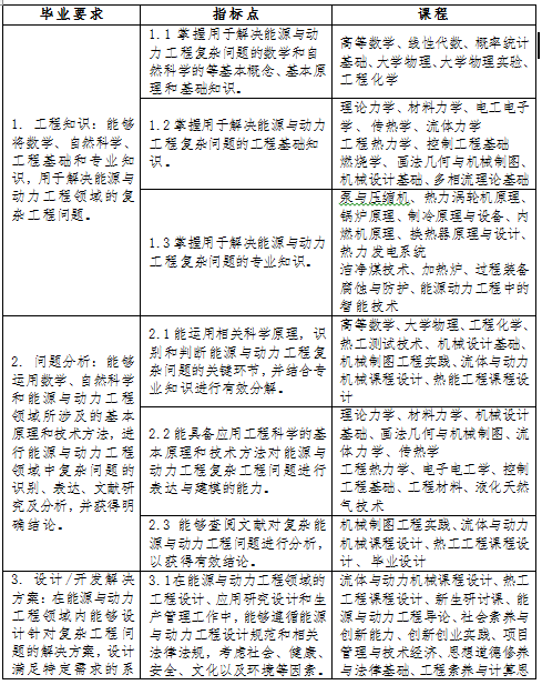 表1 开云kaiyun官方网站(北京)能源与动力工程专业知识、能力达成方案