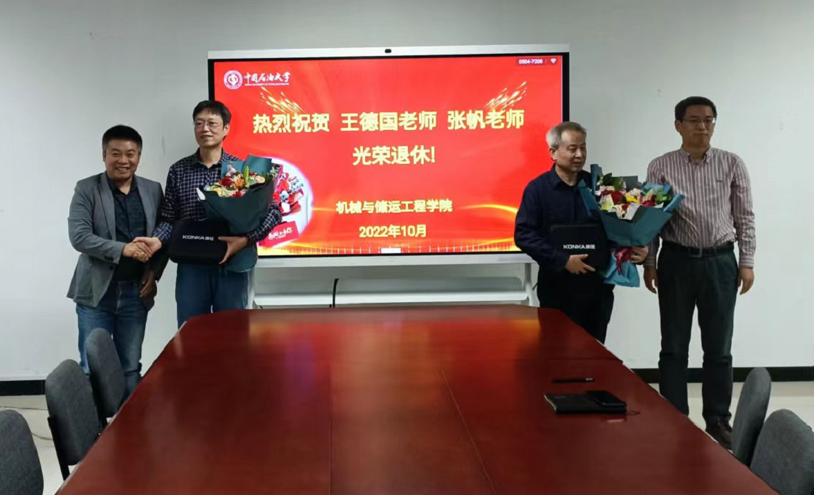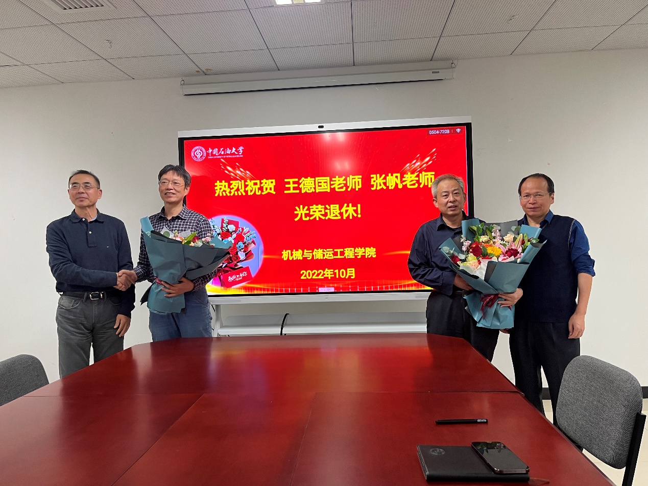 10月14日下午,机械与储运工程学院在院会议室B921举办荣休会,院系领导和部分教师代表齐聚一堂,欢送王德国教授和张帆副教授光荣退休。