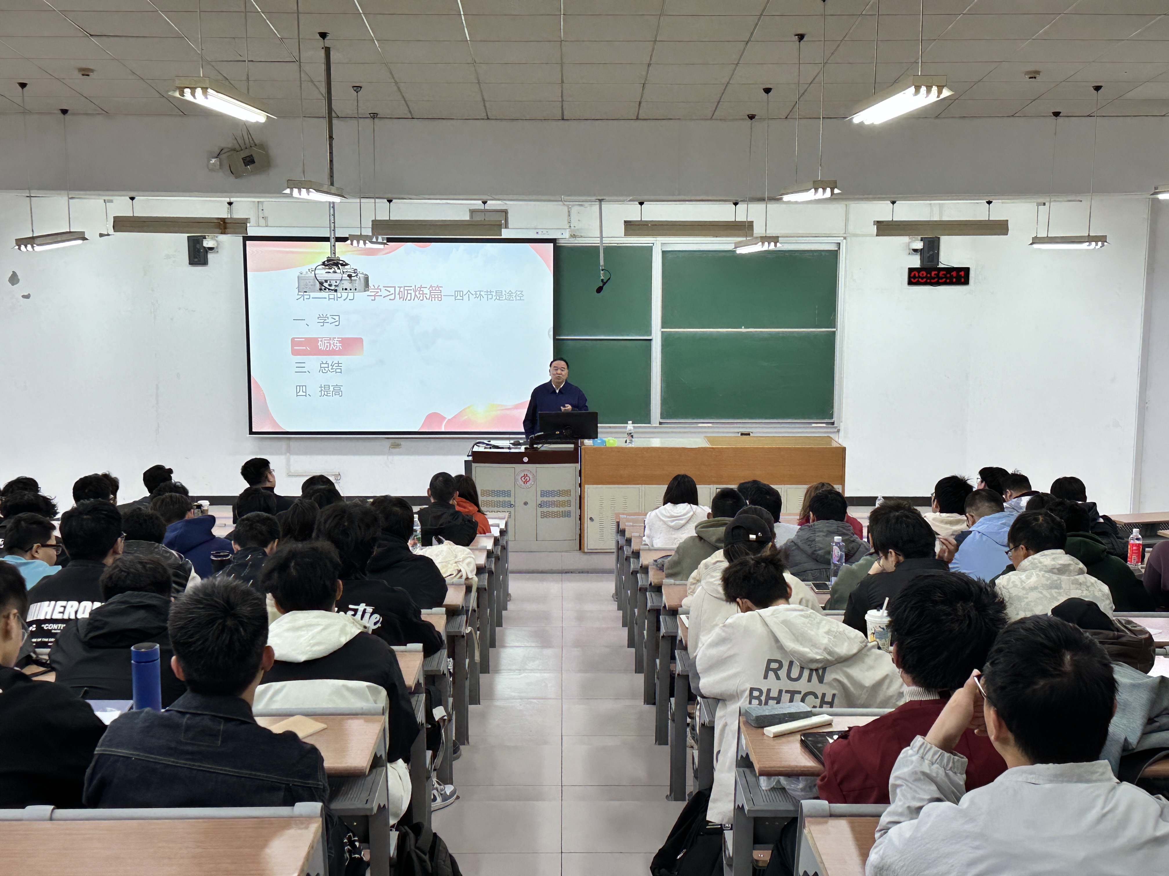 集中授课环节中,培训班邀请储运90级校友朱喜龙、机械与储运工程学院党委书记闫亮亮、院长李振林、马克思主义学院教师姜林宏4位主讲人,分别以“青年成长实践与思考”“用习近平新时代中国特色社会主义思想凝心铸魂”“重温党的历史,坚定‘四个自信’”等为题为学员们讲授专题党课,强化理想信念教育和爱国主义教育,让学员们进一步深化理论知识,端正入党动机,坚定政治方向。