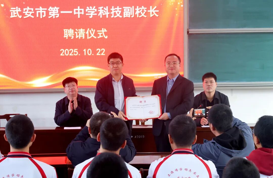聘任仪式现场,武安一中校长徐利强亲手为机械与储运工程学院温凯老师颁发科技副校长聘书,见证双方合作开启。随后,双方围绕校园科技活动策划、科普资源共享与落地、学生科技素养培养等方向,初步交换了合作意见,为后续深度联动奠定基础。