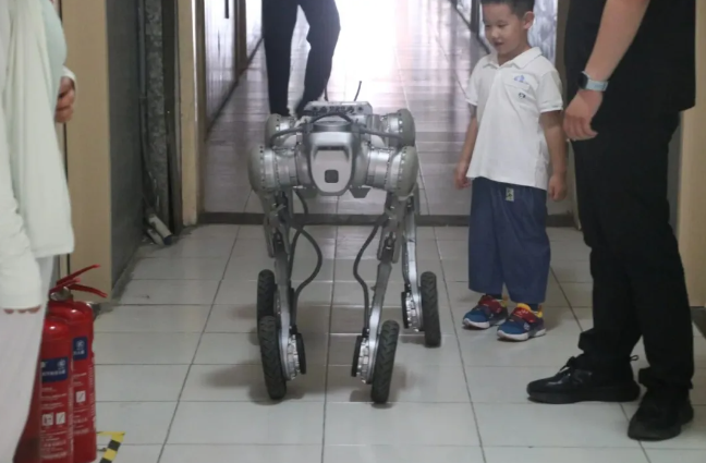 在华北电力大学,各学院开展了特色鲜明的活动。自动化系迎新开启“AI模式”,一位超炫酷的“新成员”成为回头率最高的“志愿者”。该机器人可以完成握手、比心等互动动作,机器狗化身“舞者”完成月球步、侧滑等步态,甚至展现前空翻、跳跃动作。此外,无人配送车、机械狼帮助新生将行李运送到宿舍,吸引众多路人围观,“迎宾员”“搬运工”拉满科技感。