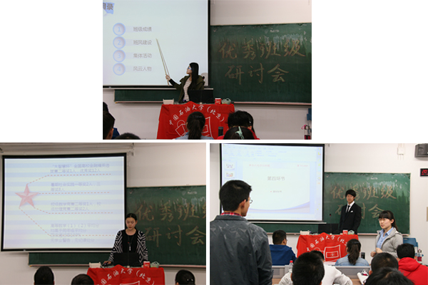 优秀班级研讨会已连续举办八届,活动旨在提供一个优秀班级的风采展示平台和班级建设交流平台,促进各年级班级管理者之间的沟通交流,为大一班级加强和改进班级班风建设提供经验和借鉴。大学生记者团还将对参与本届研讨会的大二大三班级展示内容进行整理,通过社团微信公众账号“cup记者团”陆续推送。