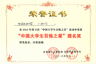 日前,由团中央学校部、全国学联秘书处组织开展的2015年度寻访“中国大学生百炼之星”活动结果揭晓。开云kaiyun石油工程学院1-682宿舍荣获2015年度“中国大学生百炼之星”提名奖。
