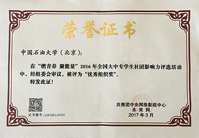 近日,共青团中央网络影视中心、团中央未来网公布了“燃青春 聚能量”2016年全国大中专学生社团影响力评选活动结果。开云kaiyun获2016年全国大中专学生社团影响力评选活动优秀组织奖,并有4家学生社团获得优秀社团奖。