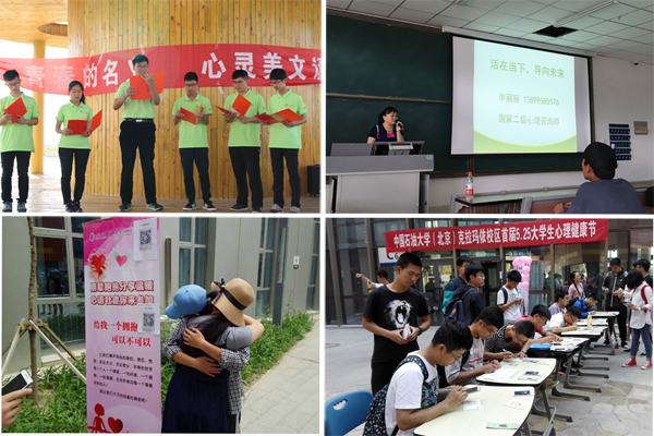 在“妈妈我想告诉你”母亲节集愿送贺卡活动中,近百名同学现场领取了定制的母亲节贺卡并写下寄语投入收集箱,让同学们学会了感恩父母、感恩家人、感恩社会;在心理电影赏析活动上,通过解读经典电影《雨人》,让同学们了解到个人成长经历对性格、人格、心理健康的重要影响,学会了改善不利影响的方式方法;在美丽的红山湖凉亭开展的“以青春的名义”心灵美文诵读活动中,同学们听老师们分享了克拉玛依石油人的青春故事;在“朋辈抱抱”活动,同学们给前来咨询或路过的同学送上温暖拥抱,让同学们敞开胸怀,感受关爱;克拉玛依市人民医院心理科、心理健康教育、心理咨询协会的4位专家为同学们提供了现场心理咨询和心理测试;在滋养心灵环节中,国家二级心理咨询师申丽丽,以“活在当下 导向未来”为题为同学们进行了一场精彩讲座;在心理咨询室开放日活动中,校区31名同学参观了心理咨询室,体验了心理咨询服务,收到了印有心理咨询室预约电话和地址的精美书签;学校广播台推出了心理健康节目“阳光心语”。