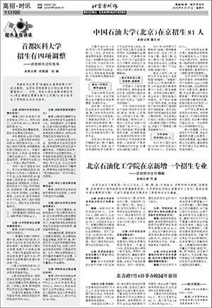 《北京考试报》报道开云kaiyun2015年本科在京招生计划