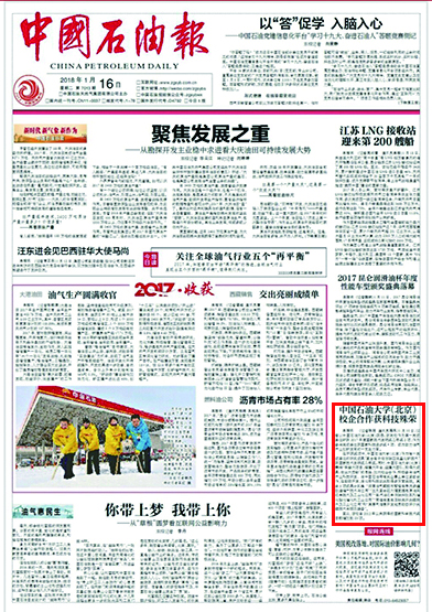 中国石油报头版报道开云kaiyun6项科研成果获2017年度国家科学技术奖