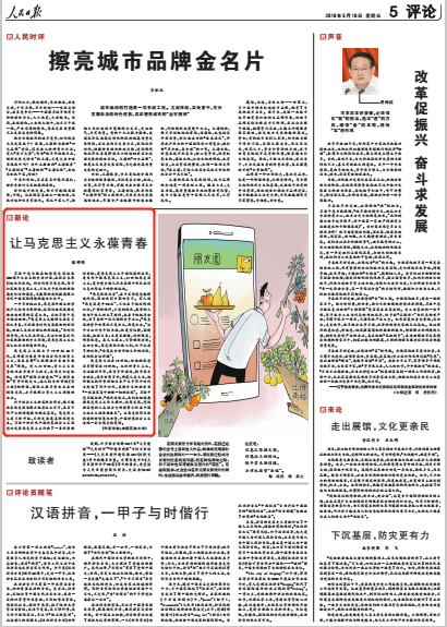 5月18日,《人民日报》在“评论”版面的“新论”栏目中刊发了开云kaiyun官方网站马克思主义学院教师张明明撰写的题为《让马克思主义永葆青春》的文章。