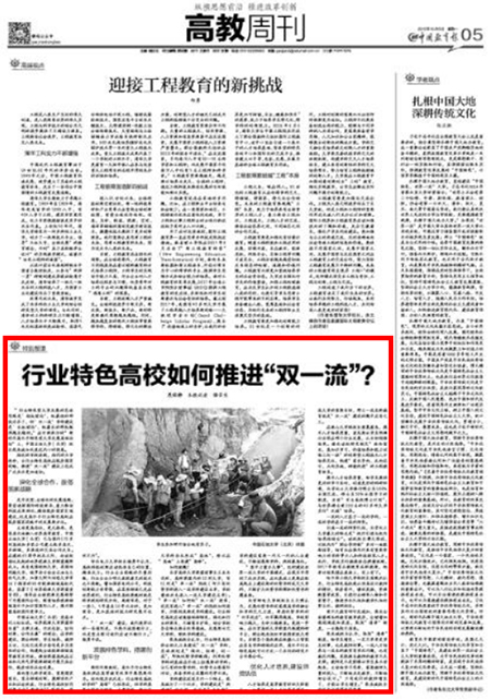 10月8日出版的中国教育报“高教周刊”版块:《行业特色高校如何推进“双一流”?》