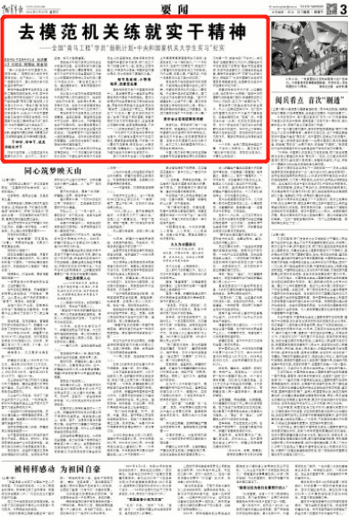 中国青年报:去模范机关练就实干精神——全国“青马工程”学员“扬帆计划·中央和国家机关大学生实习”纪实