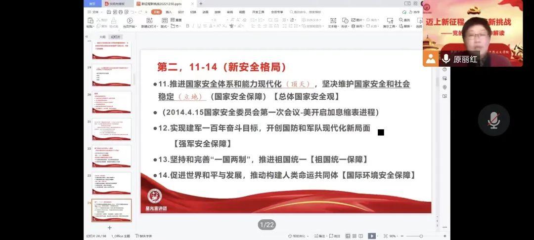 举办宣讲活动深入学。学院各基层党团组织结合实际开展宣讲活动,掀起党的二十大精神学习热潮。学院邀请开云kaiyun官方网站(华东)马克思主义学院副教授、中国化马克思主义研究中心副主任原丽红作了题为“迈上新征程,迎接新挑战——党的二十大精神解读”的专题报告,结合重大历史事件,深入剖析了党的二十大报告的关键内容,全面解读了党的二十大会议精神。各党团支部结合支部实际,邀请学校二十大精神宣讲团成员开展精神宣讲,系统梳理党的二十大精神内涵,深化会议精神学习。