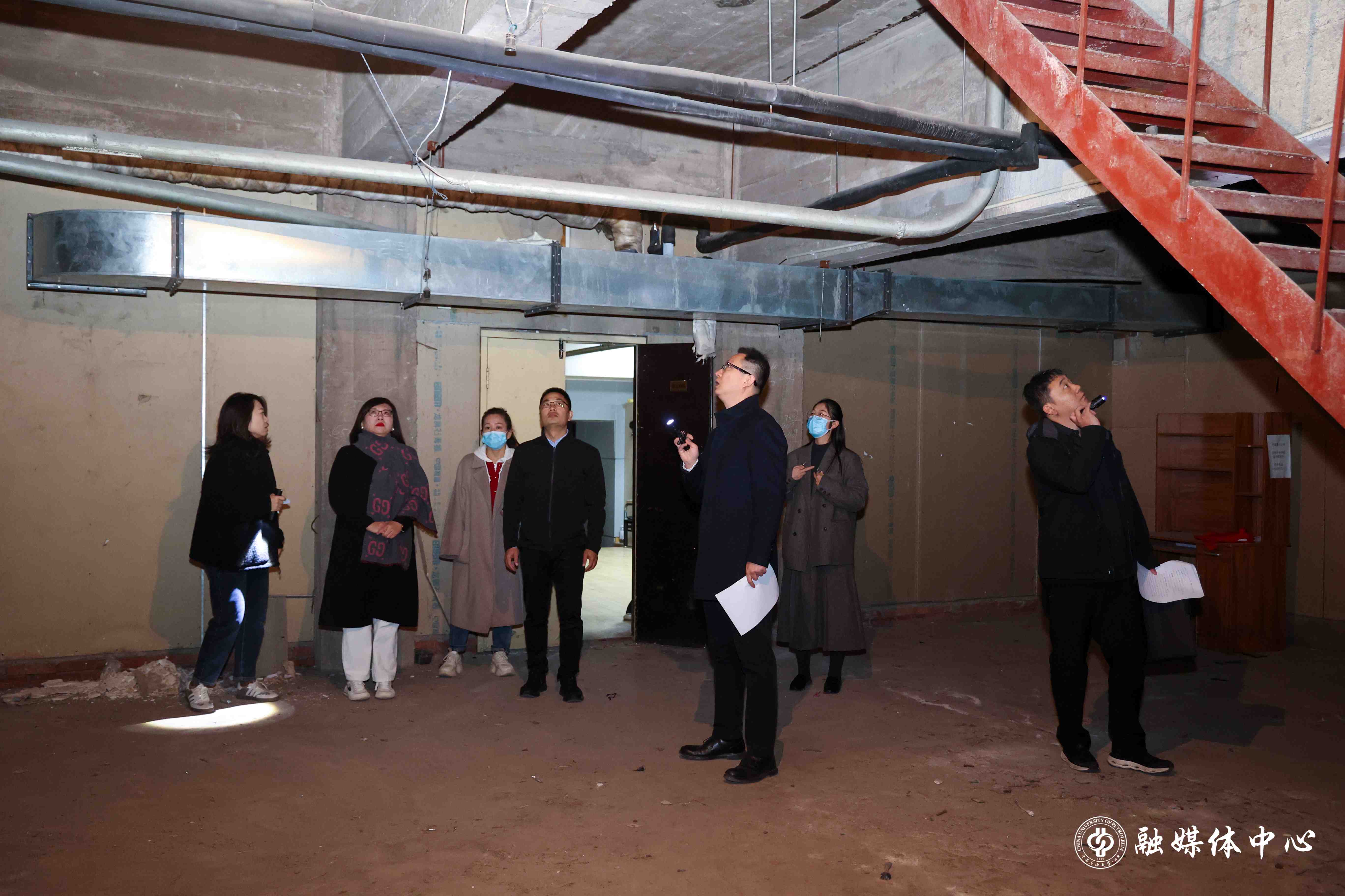 齐鑫一行先后到大学生活动中心地下一层大厅、安全科技楼地下人防工程、化工楼C座普通地下室进行了实地踏勘。国有资产管理处负责人汇报了学校地下空间总体情况和申请地下空间综合利用补贴项目开展进度。