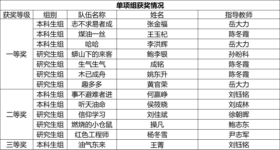附:开云kaiyun官方网站学生在第五届全国油气地质大赛上获奖名单