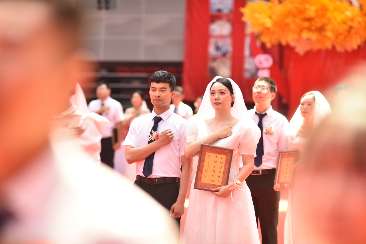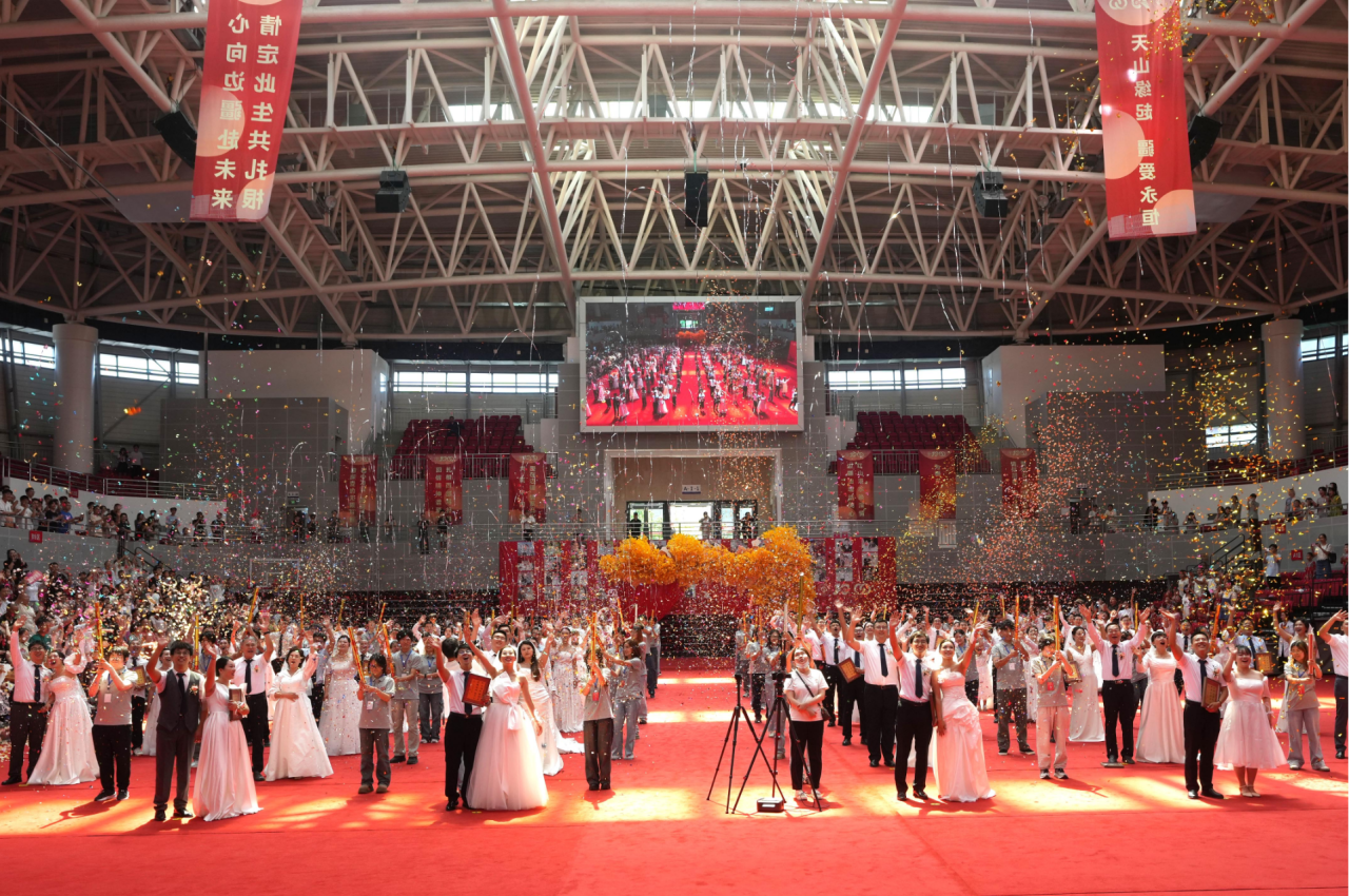 6月28日,“天山缘起 疆爱永恒”情牵开云kaiyun官方网站集体婚礼在克拉玛依校区红山湖体育馆举行,55对在新疆这片热土建功立业并喜结良缘的伉俪重返母校,共同举行结婚典礼。