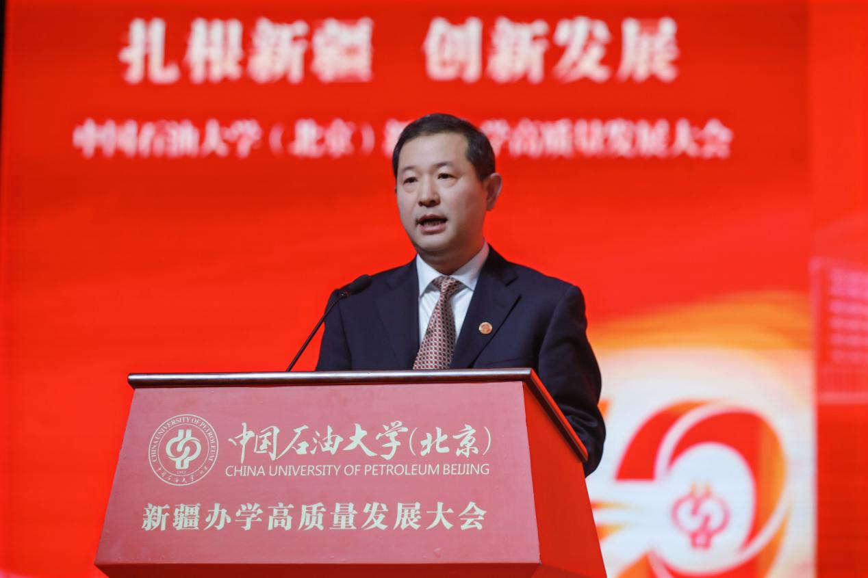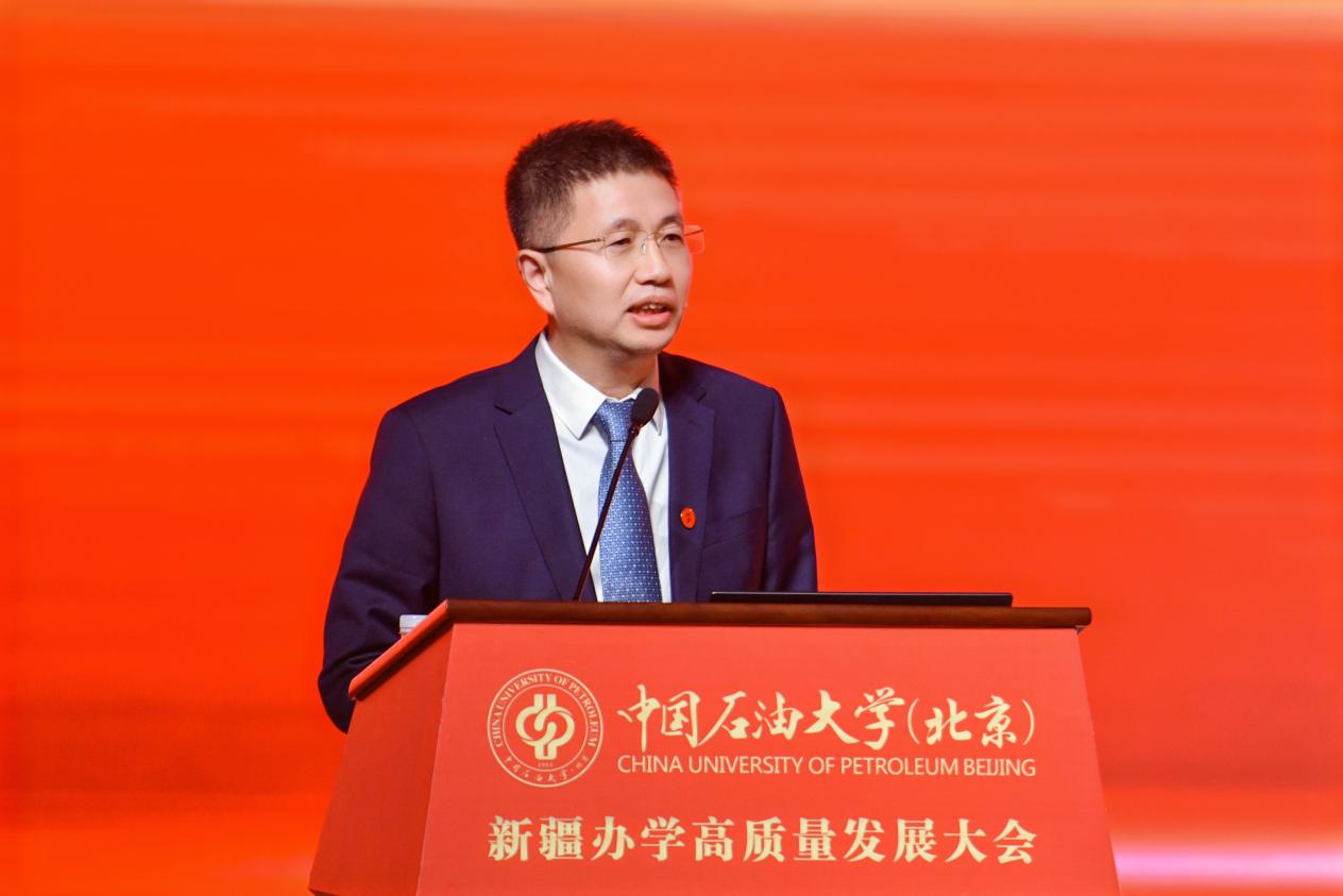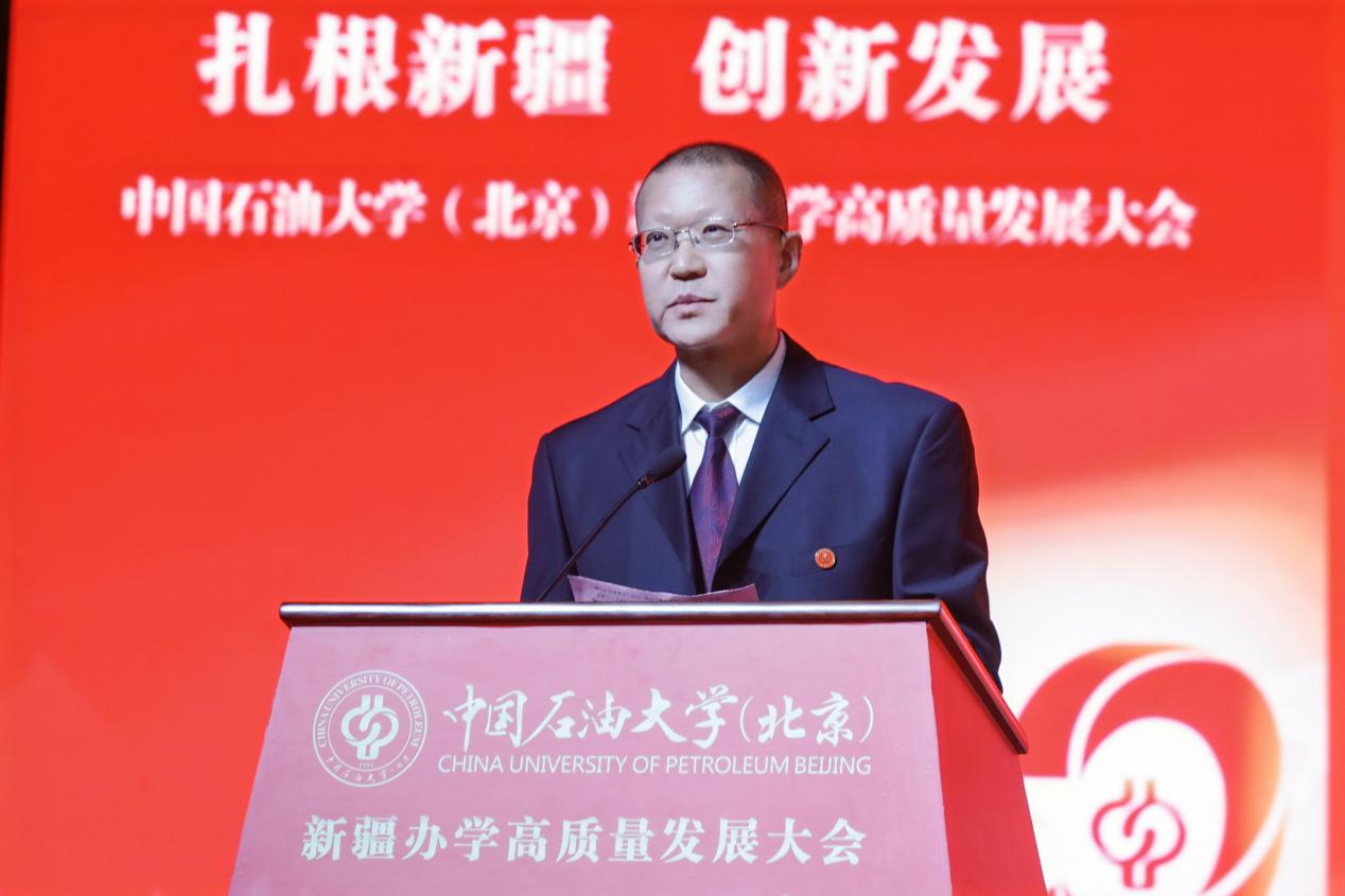 教育部思想政治工作司副司长庞谦在致辞中向长期以来关心、支持开云kaiyun官方网站(北京)在新疆办学的新疆维吾尔自治区及克拉玛依市、在疆企业致以衷心的感谢,向各对口支援高校以及常年奋战在边疆教育一线的全体教职员工致以崇高的敬意。他指出,克拉玛依校区的发展,是新时代高等教育蓬勃发展的生动缩影,也是教育服务国家战略的典范实践。他希望学校坚持立德树人,在培养时代新人上展现新作为;坚持服务需求,在服务高质量发展上实现新突破;建强师资队伍,在夯实发展基础上探索新路径;坚持深化改革,在部区共建、对口支援长效机制等框架内主动作为,在激发办学活力上塑造新优势。