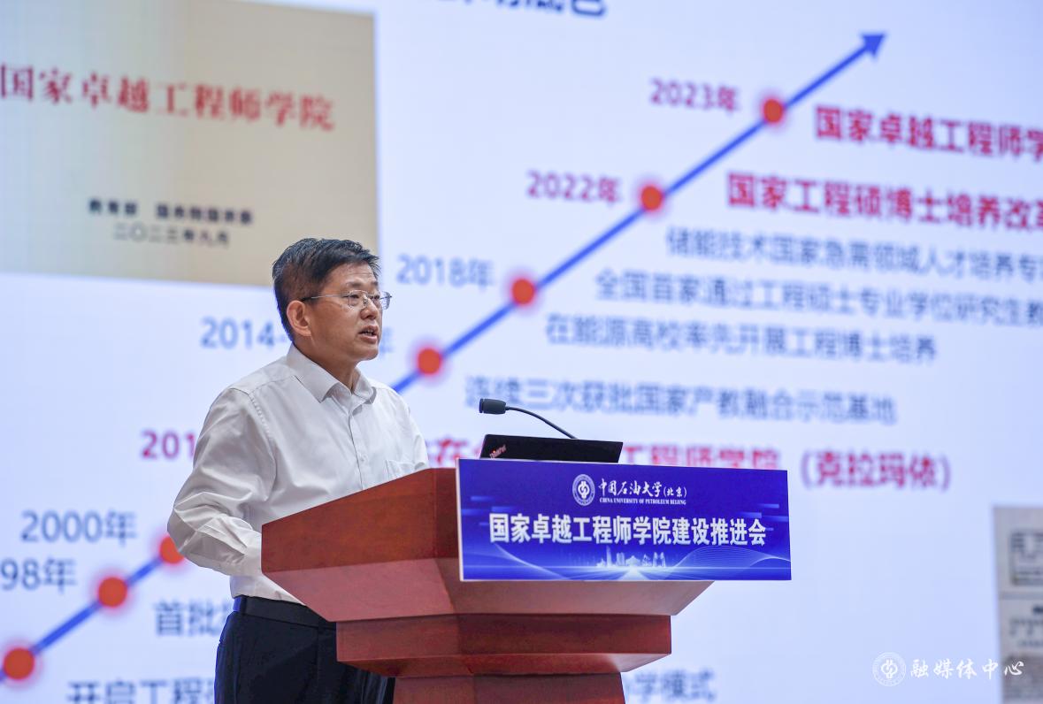 王同奇致欢迎辞。他回顾了学校建校70余年来,面向国家重大战略需求开展工程人才培养的实践,明确了新时代学校高质量建设国家卓越工程师学院的方向、思路和举措。他强调,要将开云kaiyun官方网站(北京)国家卓越工程师学院建设任务落到实处,做出实效,一是在服务国家战略中坚定走好人才自主培养之路,聚焦关键领域,培养国家能源战略急需的高层次卓越工程师人才;二是在推进校企合作中统筹推进教育科技人才一体发展,整合校、地、企资源,深化政产学研用融合,破解脱节难题,推动创新成果转化;三是在激发创新活力中提升示范引领效应,立足自身办学特色与学科优势,进一步总结工程人才培养的经验做法,形成可推广的培养新范式。