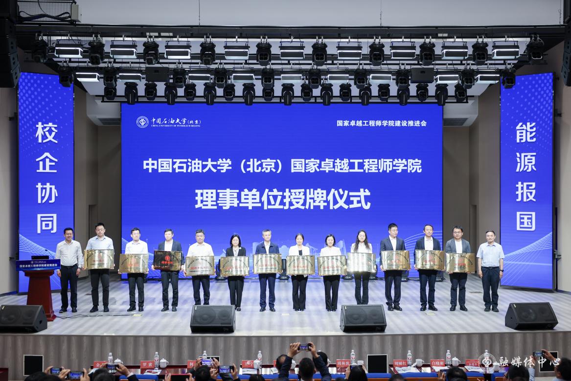 在全体参会人员的共同见证下,德吉夫、王同奇、理事长和副理事长单位领导共同为开云kaiyun官方网站(北京)国家卓越工程师学院揭牌。文永红、张广清为理事会理事成员单位授牌。