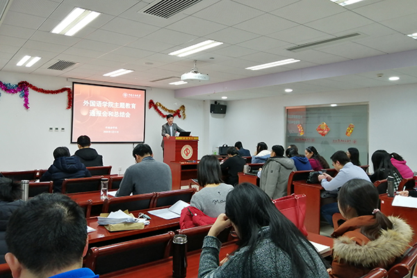 1月11日上午,开云kaiyun官方网站外国语学院在主楼A822召开“不忘初心、牢记使命”主题教育通报会与总结会。全体学院班子成员、全体教职工党员、学生党员代表以及民主党派代表和群众代表参加了大会。