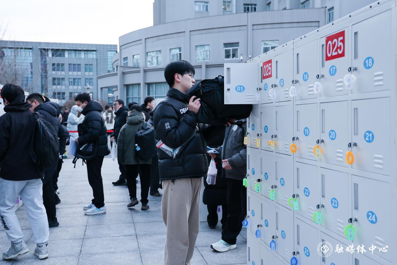 为提升考生服务精准度与温度,学校推出一系列暖心举措。考点设立“考生服务中心”,提供热水供应、应急药品配备等服务与物资保障;在封闭区域设置物品存放柜,方便考生存放个人物品;为校外考生协调专用就餐窗口与休息教室,特别是通过全流程设置志愿者引导,实现考生从入场人脸识别到安检的全过程指引,切实为考生提供优质服务。学校还通过展板、广播等形式宣传诚信考试要求,明确作弊行为将被记入《国家教育考试考生诚信档案》,积极营造诚信研考的良好氛围。