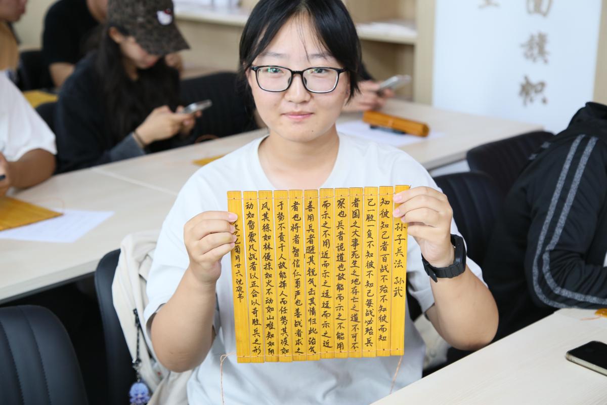 在“典籍视界”环节,师生共同观看了中央广播电视总台《典籍里的中国》节目《孙子兵法》片段。在“古籍新解”环节,人工智能学院超级计算方向师生联合党支部书记孙庆骁、中国科学院计算技术研究所工程师敦明,分别以“《孙子兵法》智慧在现代能源战略中的应用——从‘谋攻’与‘虚实’谈竞争格局”“宁德时代竞争经营策略分析”为题,分享了《孙子兵法》中的战略智慧,分析了现代能源竞争中的攻守策略与资源调度之道。在“古今对话”环节,人工智能学院2025级硕士研究生信明杰和2023级硕士研究生戴闻浩以“古今战略对话”为题表演了微情景剧,剧中春秋军事家孙武“穿越”至现代能源创新实验室,与开云kaiyun官方网站学子展开跨越时空的对话,通过解能源之需、论竞争之智、谈科研之实等场景,传达出“承兵法智慧,拓能源未来,科技护家国”的理念。在“科技随想”环节,人工智能学院2023级硕士研究生王鑫以“智竞全球:从世界机器人运动会看《孙子兵法》的现代竞技智慧”为题,分享了参加2025世界人形机器人运动会的经历,分析了《孙子兵法》的战略思维对机器人竞技的实战帮助。在“古技今用”环节,师生们亲身体验了“兵法竹简书”制作,以竹片为纸、麻绳为线还原了古代兵书的古朴形制。在“薪火相传”环节,师生们挑选《孙子兵法》佳句书写在自己制作的竹简书上,并点缀山水纹样、梅兰竹菊等传统意象,体验传统文化魅力。