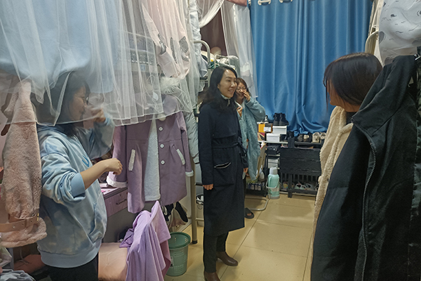 24日晚,王茹及学院本科生班主任、辅导员等前往学生润杰公寓,深入学生宿舍,与各班班长及学生交谈,了解学生的课余生活和学习情况,增进学生和班主任之间的沟通交流。