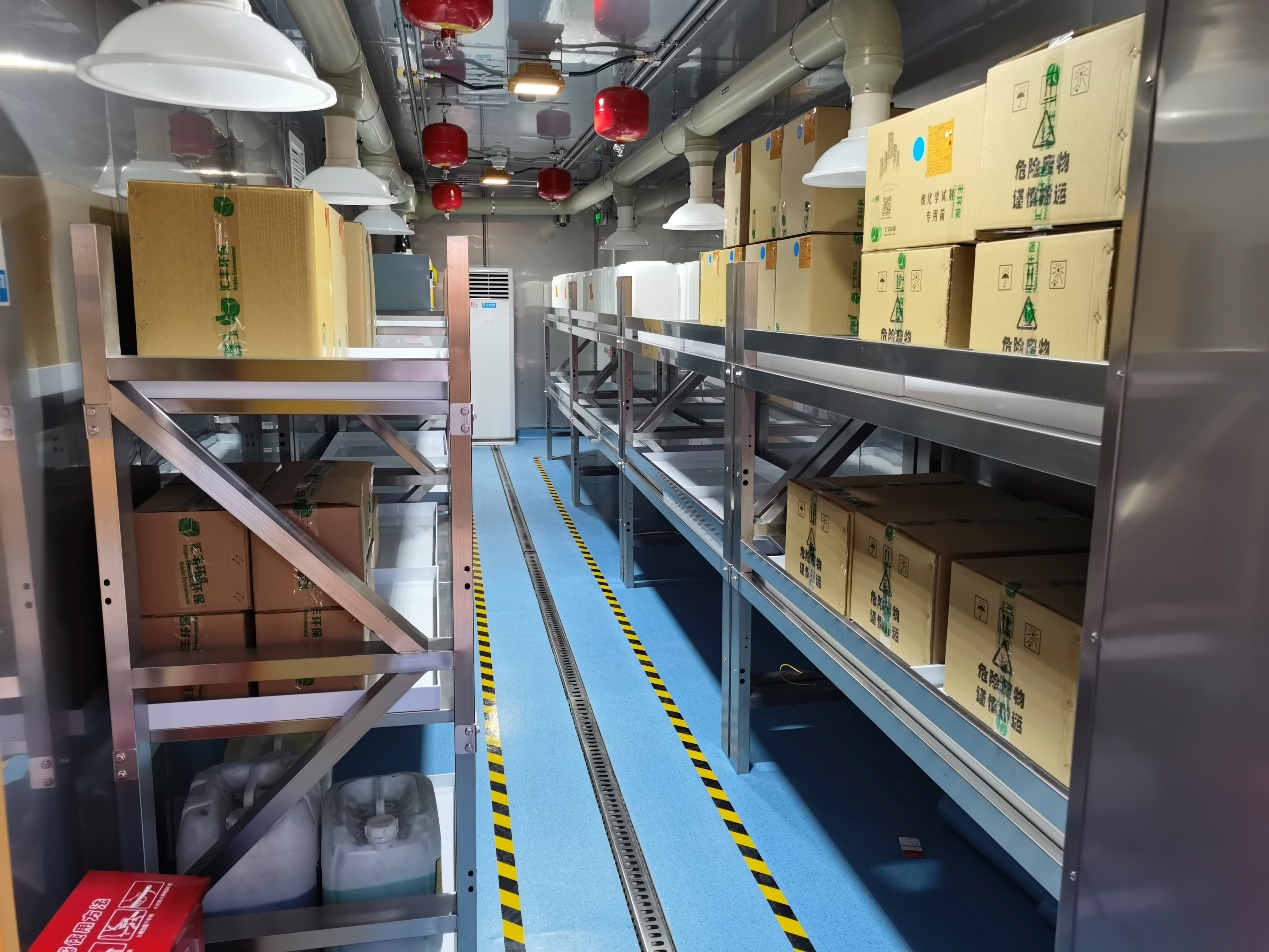 国有资产管理处人员、技术验收专家等参加验收。在验收过程中,技术验收专家重点围绕防爆电气系统、通排风系统、废气净化处理系统、安全储存及智能监控等设施进行了质询与交流。