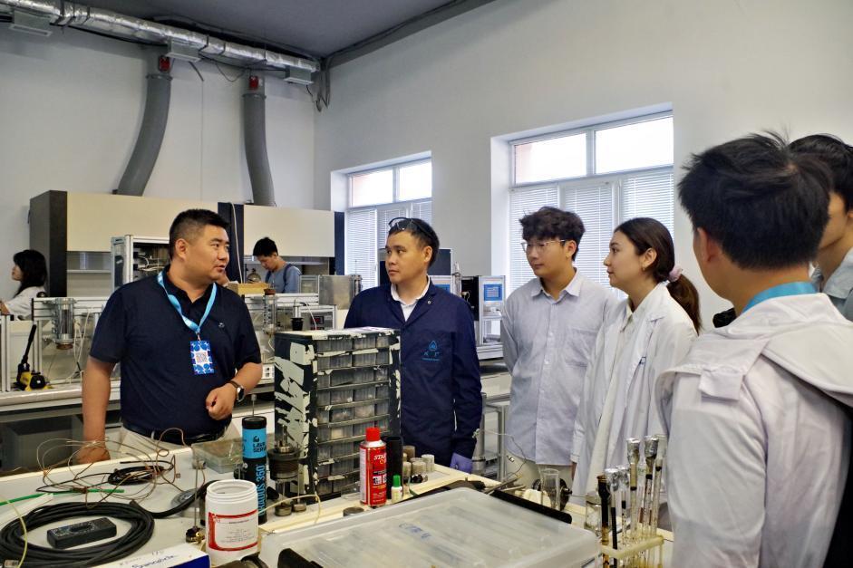 在哈萨克斯坦国家石油天然气公司,师生近距离观察阿特劳开采的原油样品与岩心;里海石油天然气设计研究所内,负责人系统介绍和展示了石油化工厂、天然气处理站的设计逻辑与常用软件;在New Tech System Group公司车间里,同学们学习了不锈钢管道的剪切工艺、隔温材料的特殊性能;在全球最大油田技术服务公司斯伦贝谢(阿特劳分公司)、北里海运营公司(NCOC),师生深入了解了行业的前沿动态。彭威带领学生参观了阿特劳石油与天然气大学分校区化学实验室,学习了废水中氯元素含量测定、石油元素自动分析及油品物性检测等专业知识。