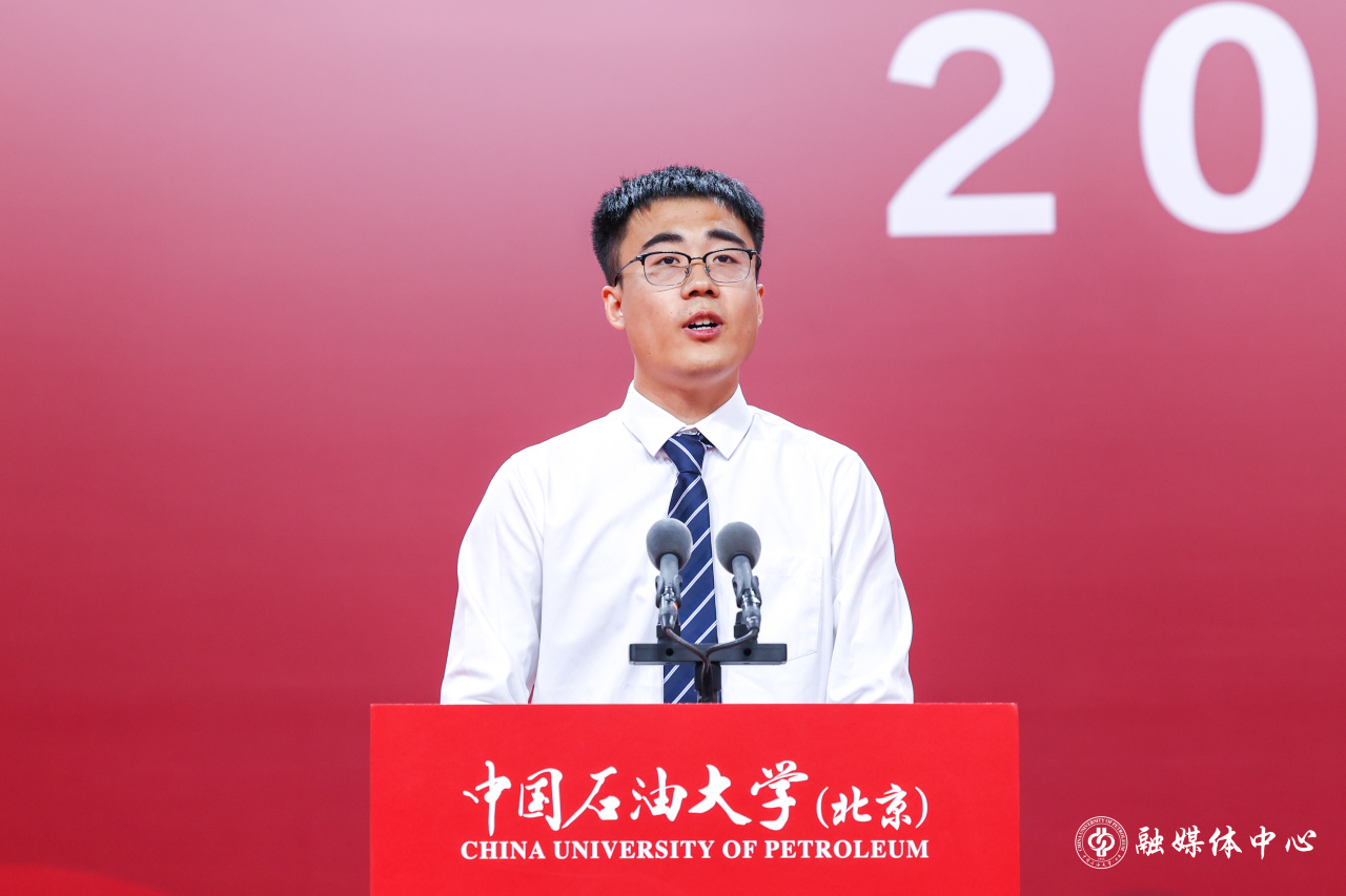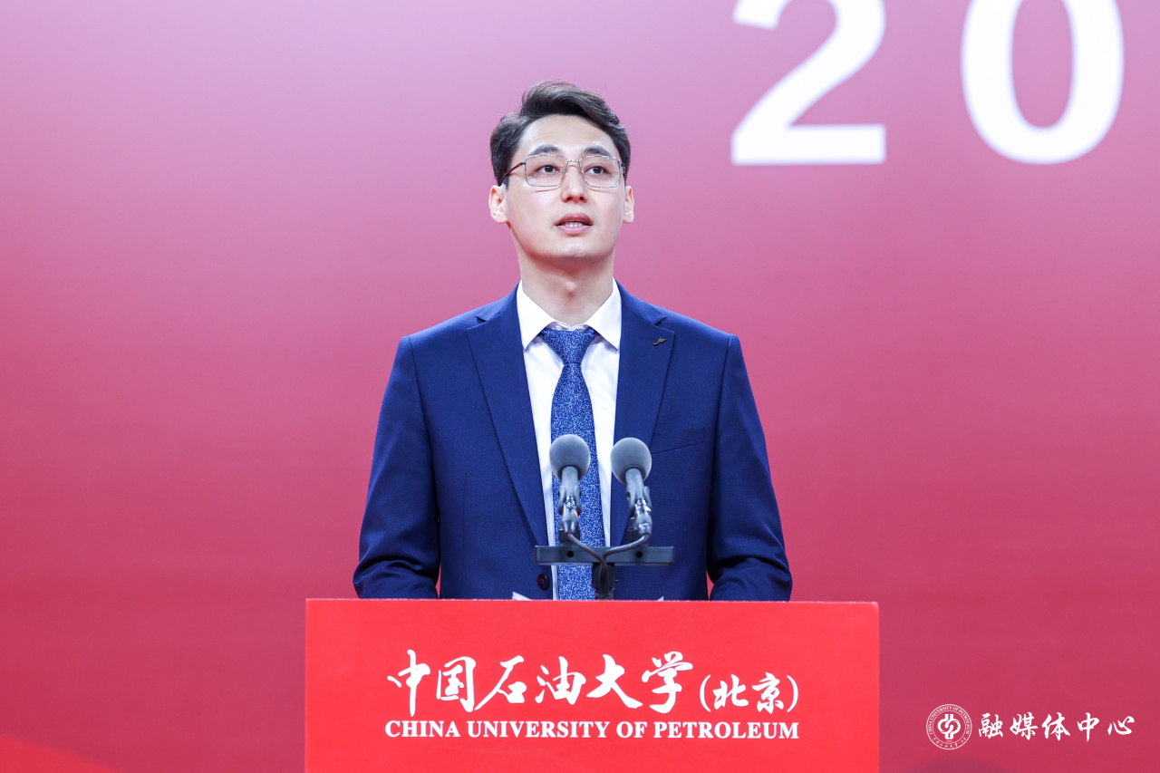 校友代表、现就职于中国石油勘探开发研究院的张婧雅结合自身工作奋斗经历,分享成长感悟,勉励毕业生们心怀感恩、坚定信念,怀揣梦想、砥砺前行,立志报国、扎根一线,在奉献中绽放青春光彩,在奋斗中书写强国有我的辉煌篇章。