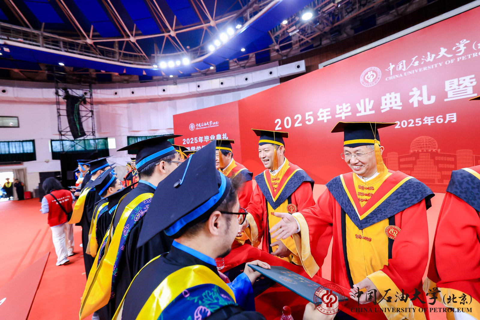 典礼在《我为祖国献石油》的嘹亮歌声中圆满落幕。典礼结束后,学校举行了2025届毕业生学位授予仪式。