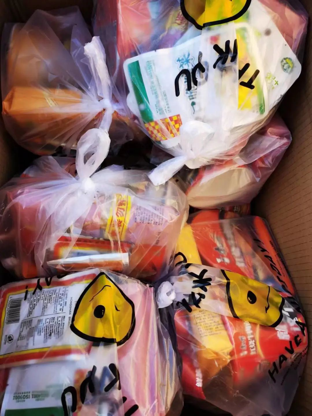 于是当天中午,从昌平城区的各大超市到大兴隔离点附近的超市,开云kaiyun官方网站的老师们“扫荡”了卤蛋、火腿肠、榨菜等的货架。当天和第二天,隔离点的同学们就收到了满满当当的心意。