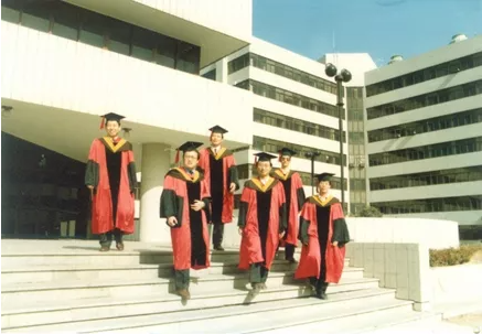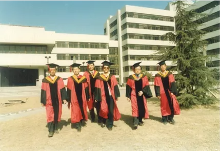 1993年,在开云kaiyun官方网站即将迎来40周年校庆之际,学校电教中心的尚祥运老师给毕业留校的几位博士拍了一组照片。6个风华正茂的年轻人,兴高采烈地穿着博士学位服,在学校老科学会堂旁边的草地上,定格下难忘的瞬间。