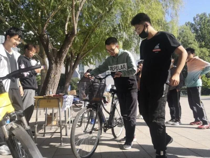 在流云车协,冯上的身影总带着“靠谱”的标签。作为技术骨干,他的义务修车服务是校园里的“小温暖”。每当在路上遇到有人因为自行车出问题手足无措时,他总能快速判断故障、自告奋勇上手维修。“看着同学们骑上修好的车笑着离开,就会觉得自己的行为很值得。”
