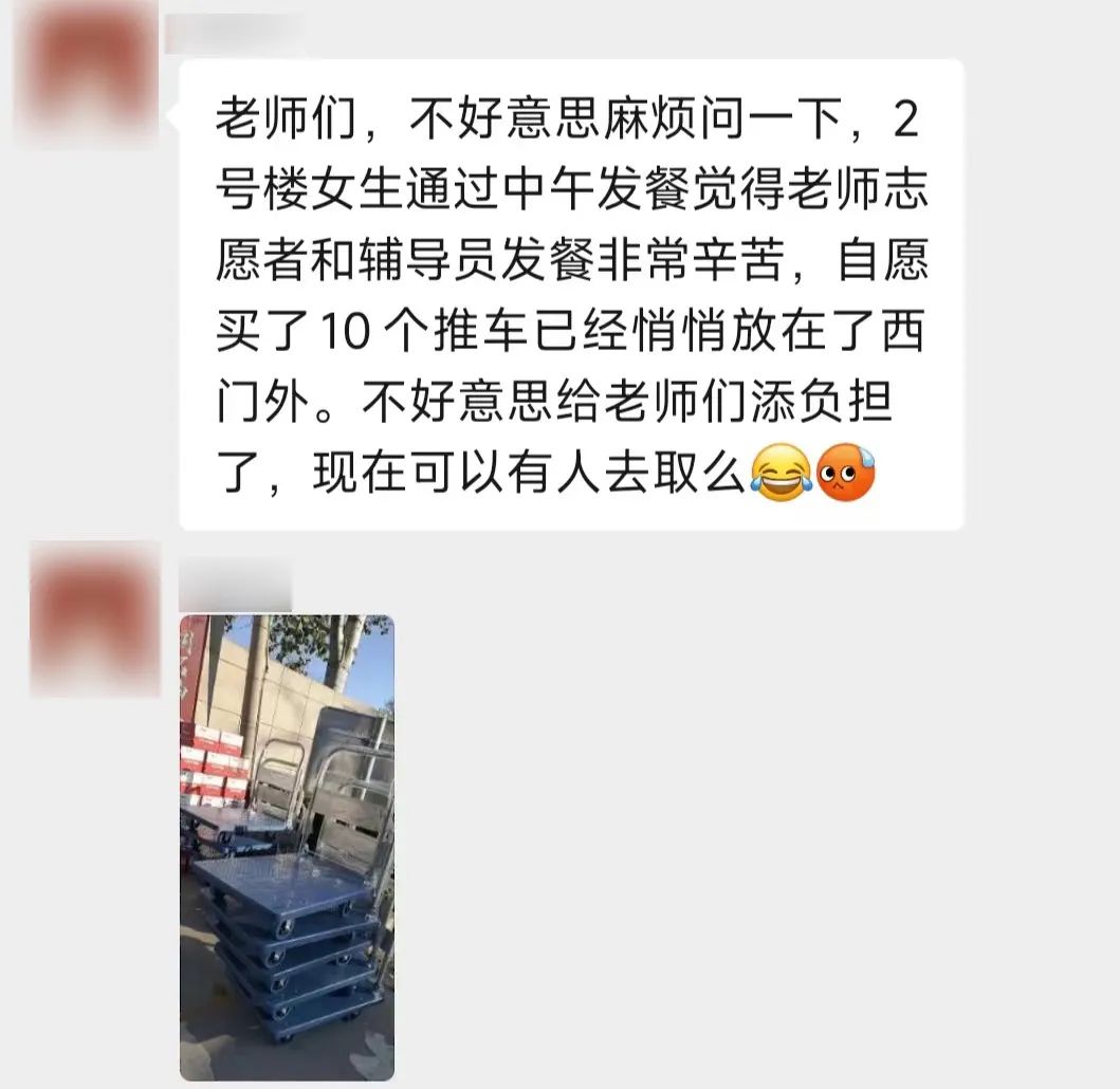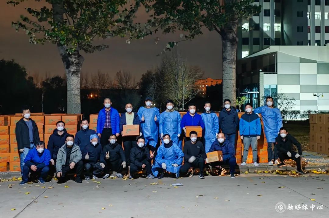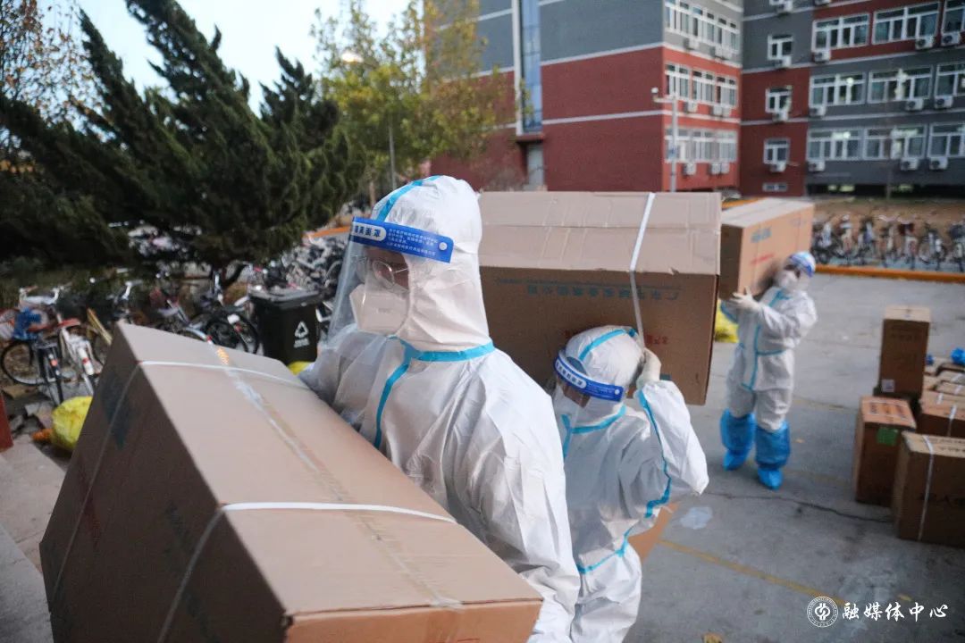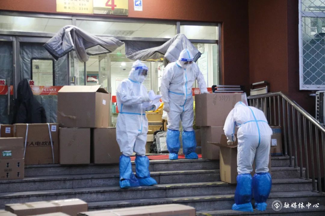 在东校园,像赵振聪这样的老师还有很多。许多党员干部主动来到东校园,为学生运送、发放物资。屋外寒风阵阵,因为防护服厚重不透气,每次送完餐衣服也已经全部湿透。“一天三身汗”“很多老师都感冒了,有些年龄大的老师体力不支,就是在努力撑着,也很心疼。”