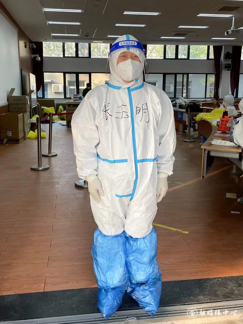 校机关的佟妍老师,家里老人刚刚回到老家,没人照看孩子。得知学校突发疫情需要突击队员时,她立刻给老人买了返回火车票,当天入校加入战“疫”。