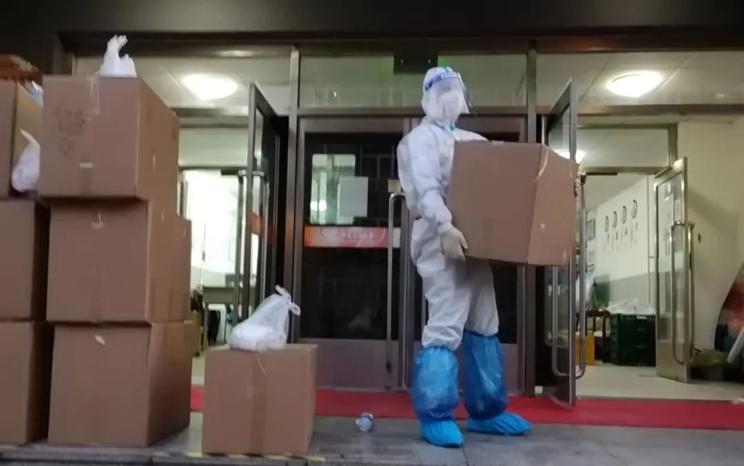丁拼搏老师和其他志愿者们在东校园一起分发物资,几天下来对工作强度已经习以为常,可是看到好几箱学校给学生晚餐配的汤后还是有点“一脸懵”,当天还配送了牛奶、苹果、梨。“社会各界和学校对学生的关爱,不知道学生感受到没有,我们搬运工可是切身体会到了,太沉甸甸了!”