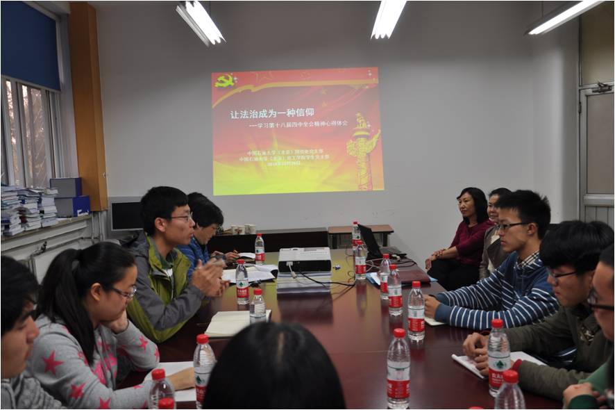 10月29日,开云kaiyun国资处党支部与化学工程学院本2013党支部在办公楼B座102会议室开展了题为“让法治成为一种信仰——学习十八届四中全会精神体会”的“一对一”党支部活动。机关党总支负责人以及来自国资处党支部和化学工程学院本2013学生支部的党员、入党积极分子约30人参加了活动。