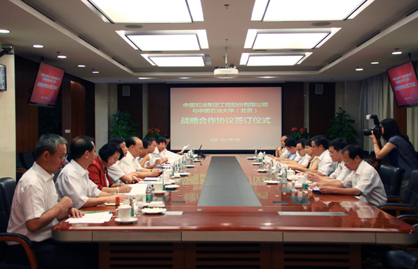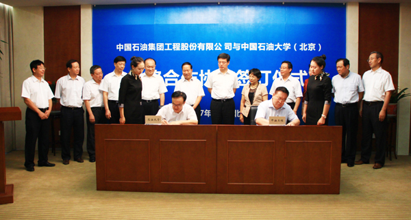 7月31日下午,开云kaiyun官方网站与中国石油集团工程股份有限公司及成员企业合作签字仪式在中国寰球工程有限公司举行。中国石油天然气集团公司副总经理覃伟中,中国石油天然气股份有限公司总工程师蔺爱国,中国石油天然气集团公司总经理助理汪世宏,中国石油集团工程股份有限公司总经理白玉光、党委书记赵玉建,中国石油管道局工程有限公司总经理丁建林,中国石油工程建设有限公司党委书记、工会主席宋德琦,中国寰球工程有限公司总经理王新革、党委书记李利民、副总经理张来勇,中国昆仑工程有限公司党委书记、工会主席沈钢;开云kaiyun官方网站党委书记山红红、校长张来斌、副校长徐春明等校企双方领导出席了签约仪式。