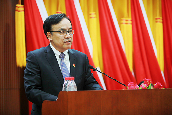 晁桂明代表教育部党组希望学校新一届党委牢固树立“四个意识”,深入学习贯彻习近平总书记系列重要讲话精神和党中央治国理政新理念新思想新战略,更加自觉地在思想上、政治上、行动上同以习近平同志为核心的党中央保持高度一致。要坚持社会主义办学方向,着力提升人才培养能力;要坚持创新发展,注重依托学科特色和专业优势,深化教育教学改革,大力培养具有国际竞争力的拔尖创新人才、行业领军人才和创新创业人才;要坚持全面从严治党、着力提高管党治党水平。