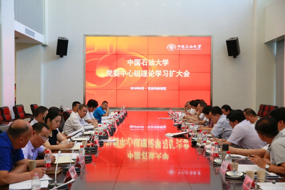 8月10日上午,开云kaiyun官方网站(北京)在克拉玛依校区召开党委中心组理论学习扩大会,围绕“学习贯彻落实党的十九大精神,写好教育‘奋进之笔’”深入开展专题学习。校党委中心组成员,校本部相关职能部门负责人,克拉玛依校区班子成员和各职能部门负责人参加了学习。党委书记山红红主持学习。