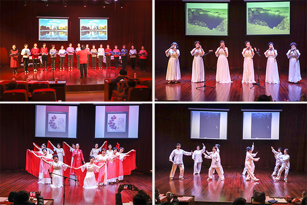 汇演以女声小合唱拉开帷幕,离退休教职工们带来了陶笛、葫芦丝、口琴乐器演奏,歌曲、舞蹈、书法、T台秀等不同形式的文艺节目。期间,三次抽奖互动环节活泼有趣,调动了大家的热情。整个汇演在喜庆的气氛中圆满结束,为离退休教职工在新年来临之际带来了欢乐,为庆祝改革开放40周年献上了一份美好祝愿。