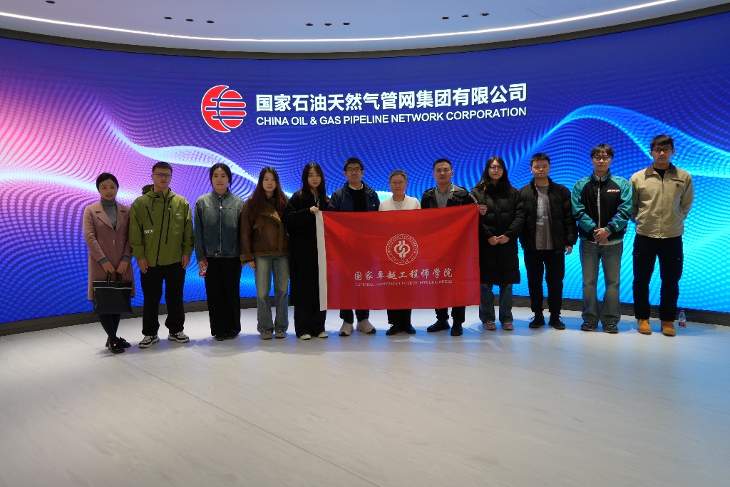 2025 年 3 月 28 日,研究生院专业学位办副主任王喜龙及 24 级管网专项班班主任温凯等老师带队 2024 级及 2025 级拟录取 管网专项生前往国家管网集团进行研学交流。集团党组组织与宣传部总经理助理白晓彬、高级经济师李佳萌等人陪同来访师生参观了集团展厅和油气调控中心,并进行了座谈交流。