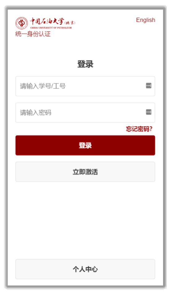 1、iPhone使用Safari浏览器、安卓手机使用微信访问:https://sso.cup.edu.cn/login,点击“立即激活”开始进行注册。