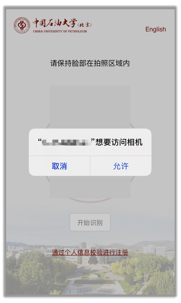 3、如果系统出现弹窗请求访问摄像头权限,请点“允许”,当页面出现摄像头画面,请将面部正对摄像头,然后点击”开始识别”,识别通过即进入账号设置页面