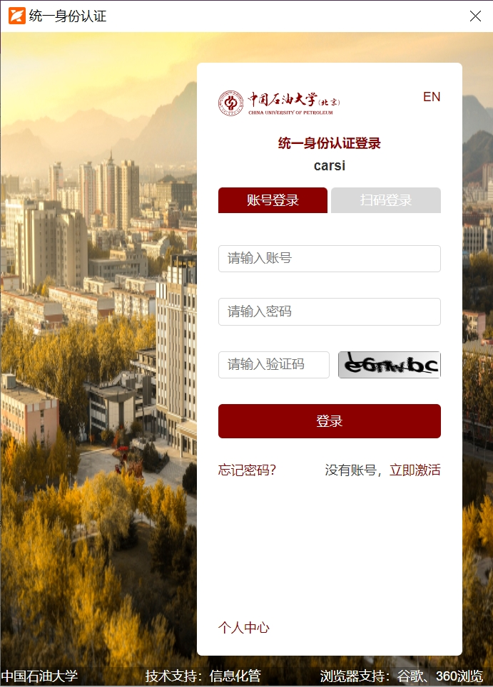 (2)在登录界面中,选择“CARSI”登录;