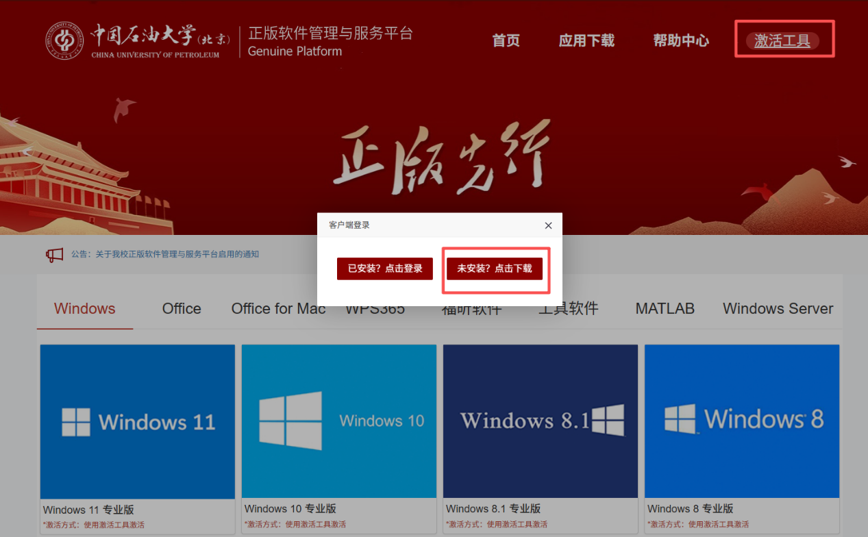 (1)点击激活工具-未安装,点击下载。
