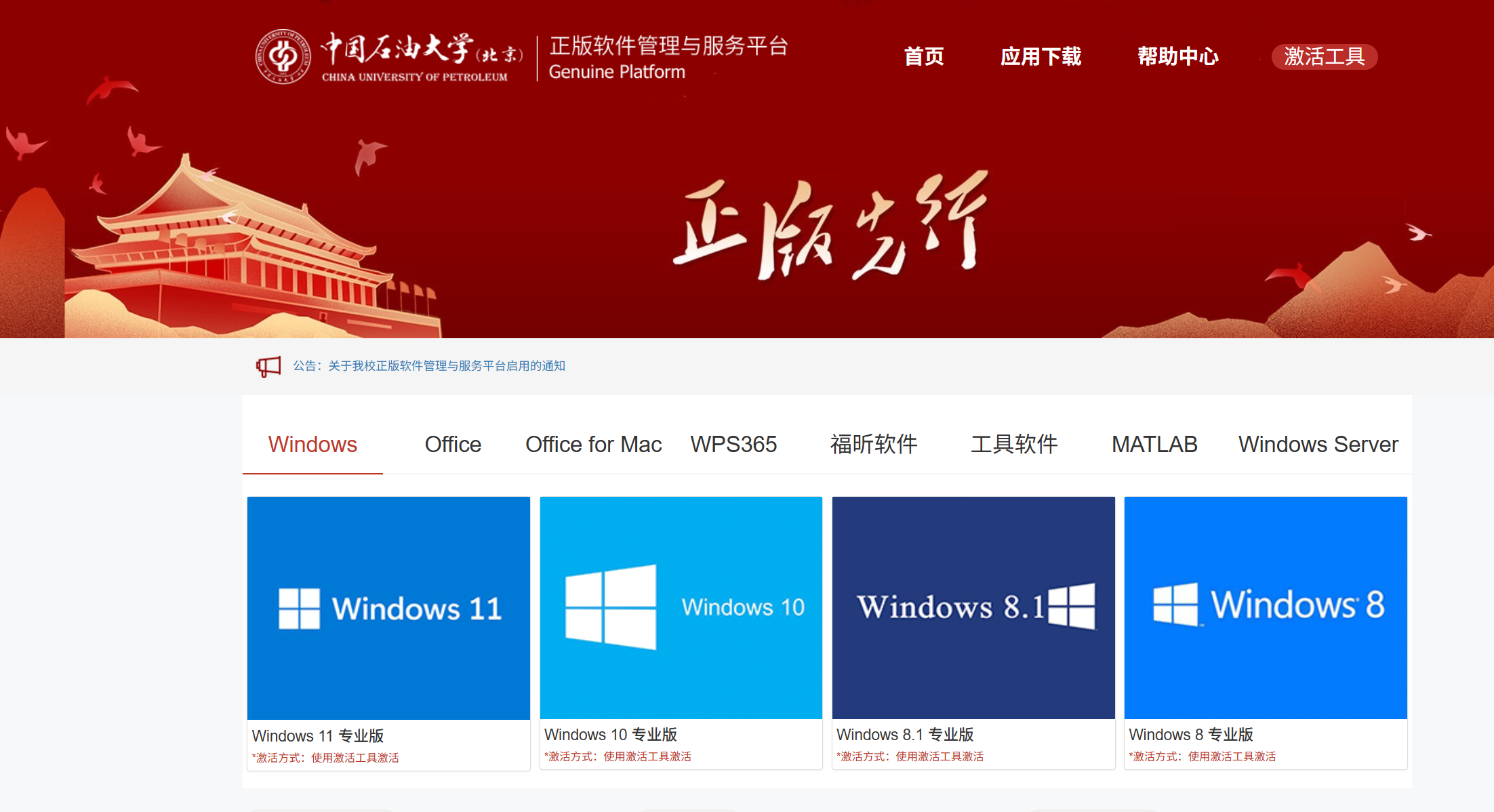 1、 在浏览器输入正版化平台网址:https://software.cup.edu.cn/。