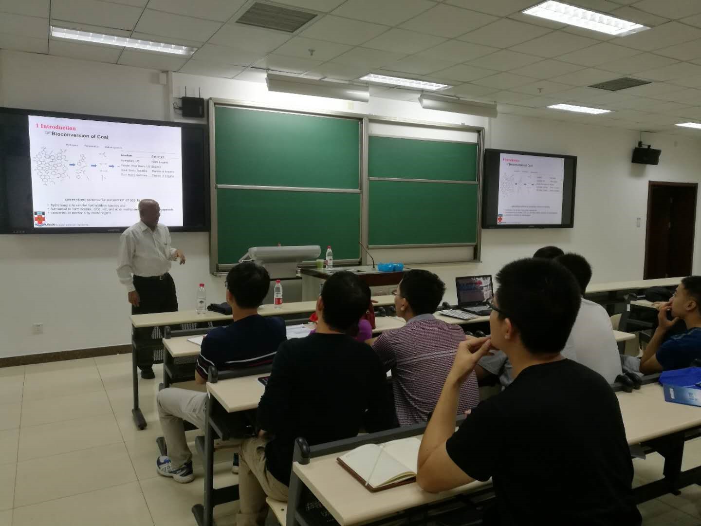 Sheik Rahman教授首先介绍了微生物采气在煤层气储层的应用,展示了这一新技术在油田现场的增产效果。随后展示了其课题组在煤层气储层压裂增产领域所做的研究工作。最后介绍了如何通过改变地层润湿性提高采收率。讲座过程中,Rahman教授积极与现场学生互动,并讲解了新南威尔士大学的博士生招生政策,现场气氛非常活跃。