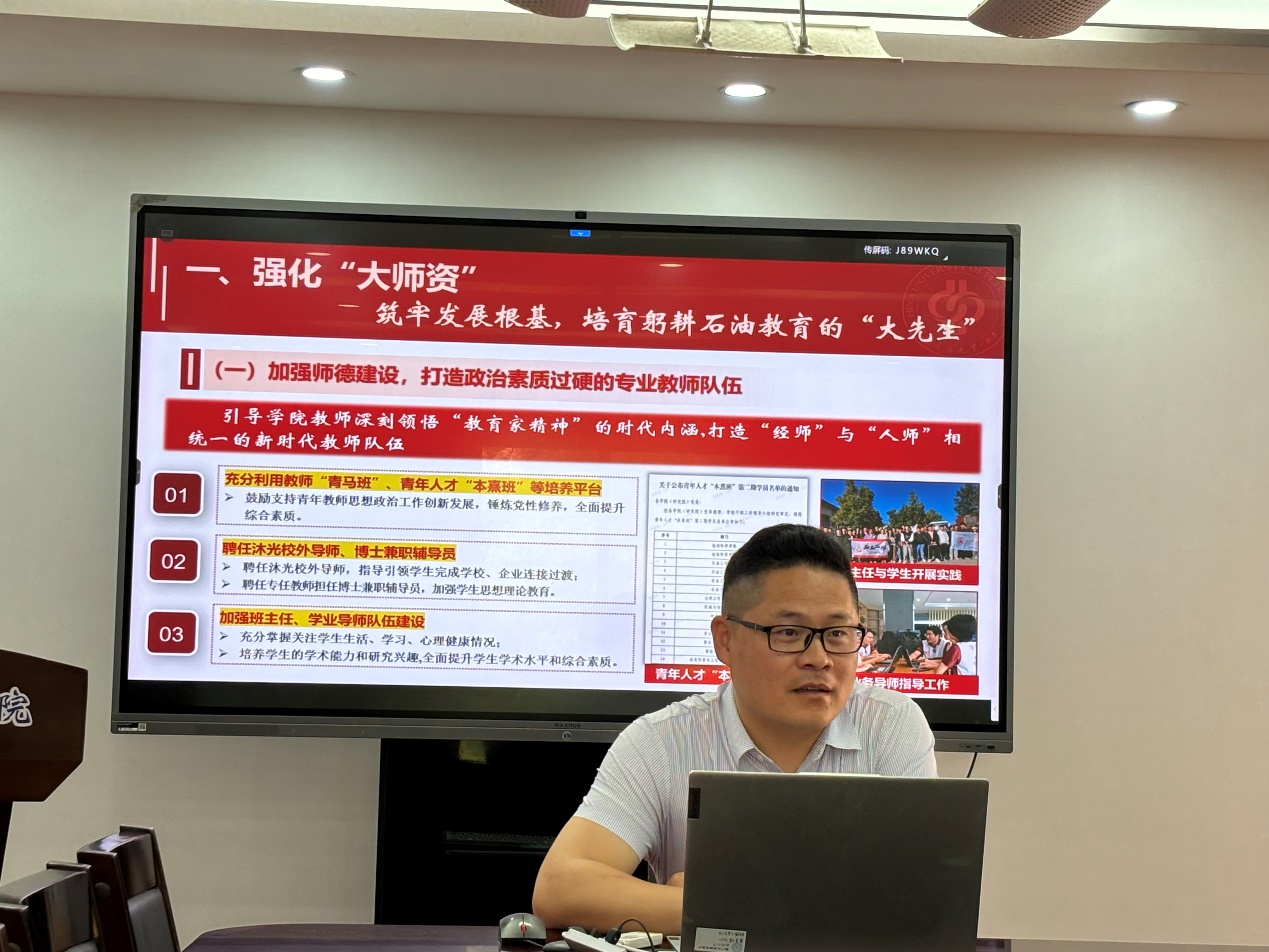 刘东东介绍石油工程学院党建引领学院高质量发展情况