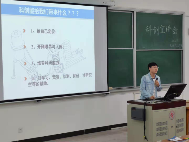 本次活动由三个部分构成。首先,由石油工程学院2021级辅导员王心贺对大学生创新创业训练计划背景意义及最新政策作解读宣讲。他提到,大创项目对促进大学生综合发展和思维发散有着重要作用。此外,王心贺也同样向大家阐述了全新的创新创业制度,使学生对科创有了更多的了解和热情。