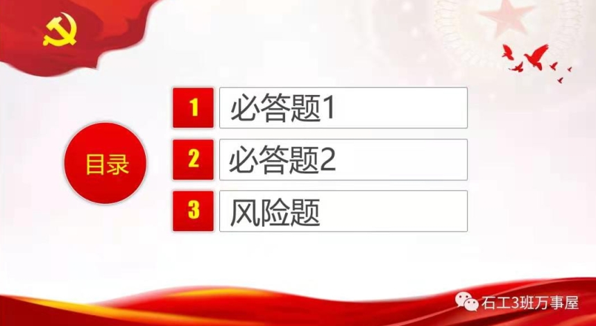 本石工20-3班开展了“学习宪法”主题教育知识竞赛活动,由组织委员抽题并请同学回答。团员嘎玛拉姆说:“本次主题教育活动内容丰富多彩,调动了同学们融入集体活动的积极性。例如:抢答环节,把我们带入了活动的紧张气氛中;“必答.50分”的题目一出,更像是一场运气和胆量的比拼。同学们积极参与各项环节,活动内容让我们了解到我国在依法治国方面的更多举措,进一步增强法制理念,巩固了法律文化知识和法律素养,起到了宣传宪法知识和培养宪法意识的重要作用。”